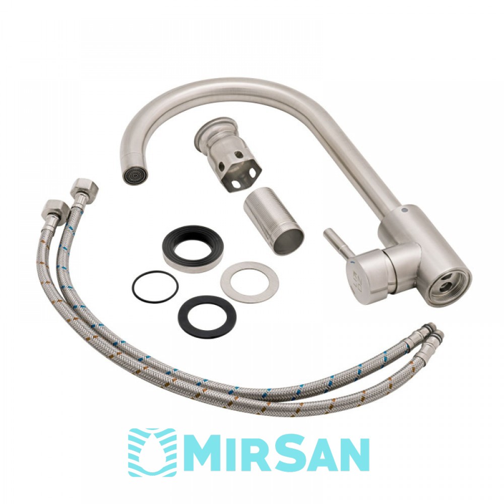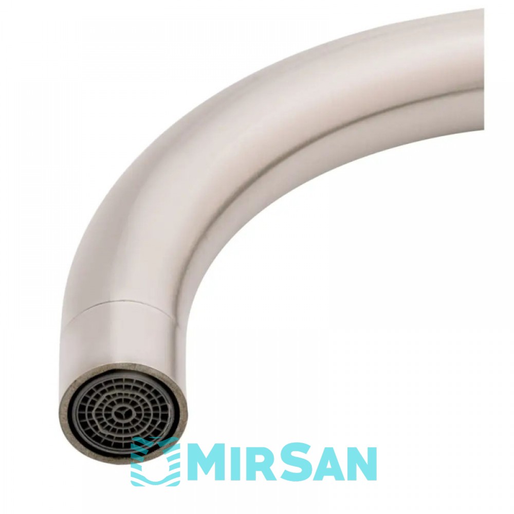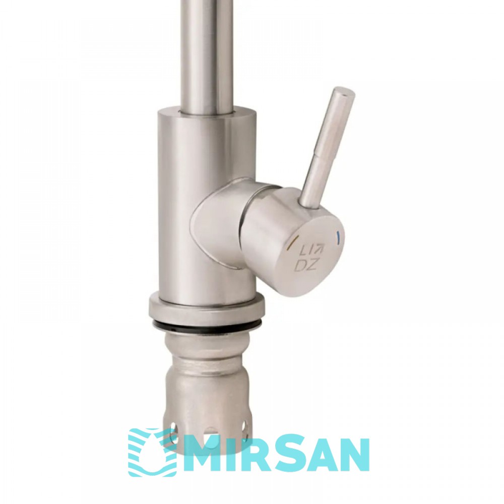 Змішувач для кухні Lidz 107 виготовлений з нержавіючої сталі. Завдяки нікельованій брашованій поверхні має оригінальний зовнішній вигляд. Виконано в сучасному стриманому стилі.